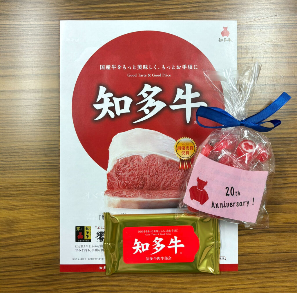 また今回は20回を数え記念大会とし、購買者様へメッセージカード入りの知多牛グッズ小物も用意いたしました。