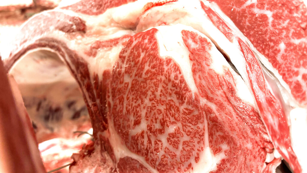 肉の照り、モモ抜けも良く、和牛の枝のようで誰の目から見ても最優秀と判る枝内容でした。