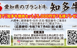 ☆知多牛精肉プレゼント☆ 2025.06.20 6/22中日新聞朝刊にて掲載されます。今年の掲載時期が例年と違いますが、今年もプレゼント企画行います。 ・応募締切りは令和7年7月4日(金) 必着・官製はがきに①郵便番号②住所③氏… 続きを読む >